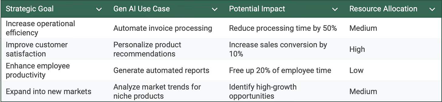 Strategic Investment: Prioritize investments in Gen AI projects that align with the company's long-term strategic goals and have the potential to generate significant ROI.