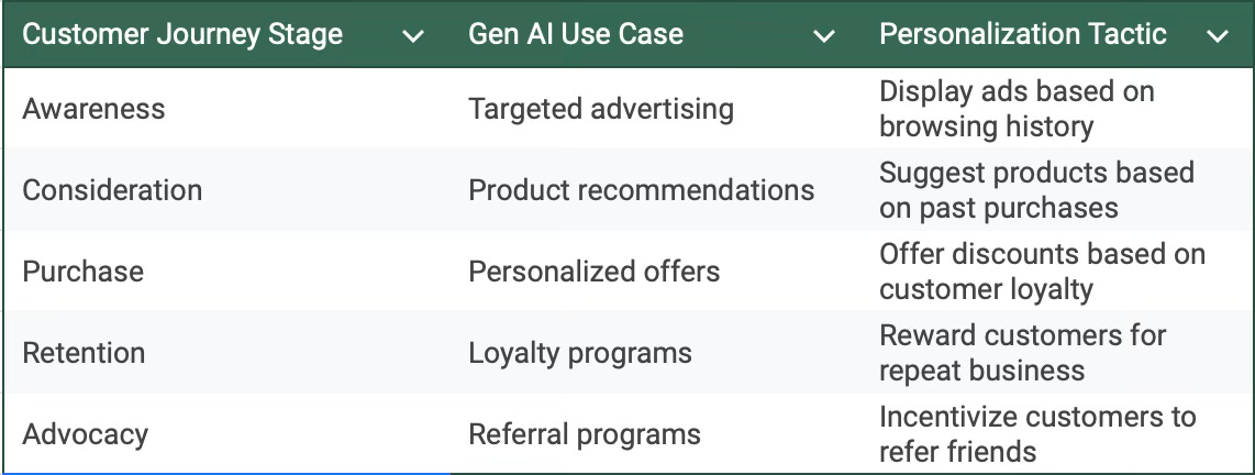 Journey Mapping: Map out the customer journey and identify key touchpoints where Gen AI can be used to personalize and enhance the experience.
